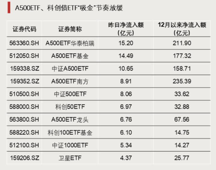 随着近期大量资金涌入,A500ETF、科创债ETF“吸金”节奏明显放缓。