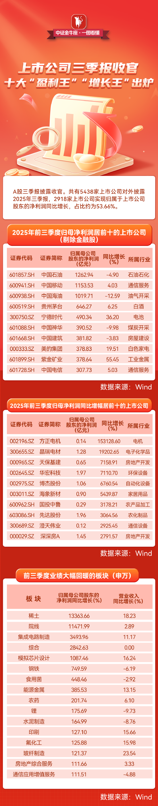 第一配资官网 【一图看懂】上市公司三季报收官!十大“盈利王”“增长王”出炉